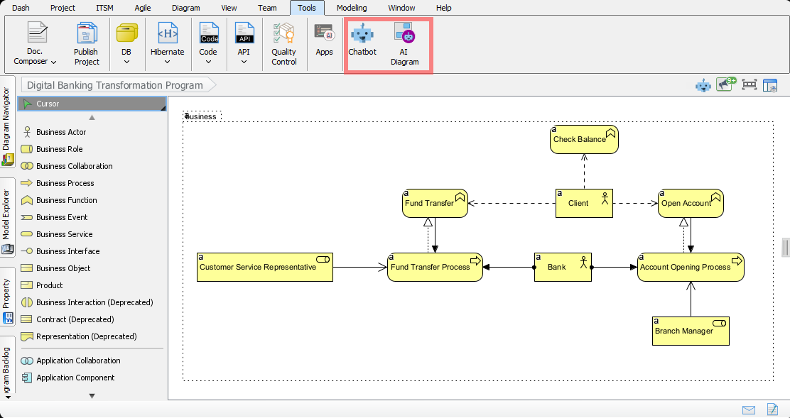 Enhanced AI Activity Diagram Support: Update notes on how AI chatbot interactions improved for activity diagrams, applicable to ArchiMate processes.